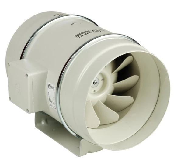 Ventiladores helicocentrífugos, de baixo perfil, fabricados em material plástico (até ao modelo 800), ou em chapa de açogalvanizado, protegida com pintura epoxi(do