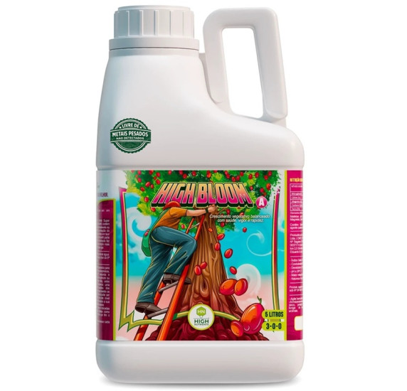 As bases de floração High Bloom® A + B foram desenvolvidas especialmente para os cultivadores brasileiros e formuladas com baixíssima salinidade, ajudando a reduzir bloqueios nutricionais e permitindo que a planta absorva com eficiência os nutrientes e suplementos utilizados durante a fase reprodutiva.