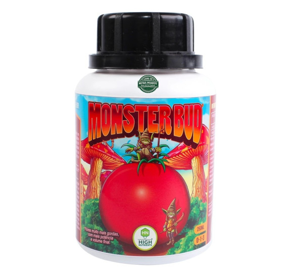 Monster Bud® foi desenvolvido para intensificar a floração, resultando em flores mais gordas, densas e com maior volume final, sem abrir mão de potência aromática e sabor. Sua fórmula organo-mineral combina altas proporções de fósforo (P) e potássio (K) com óleos essenciais de origem orgânica, aminoácidos, ácidos orgânicos e polissacarídeos, compondo a plataforma Supreme Grower® de liberação e aproveitamento nutricional equilibrados e com baixa salinidade.