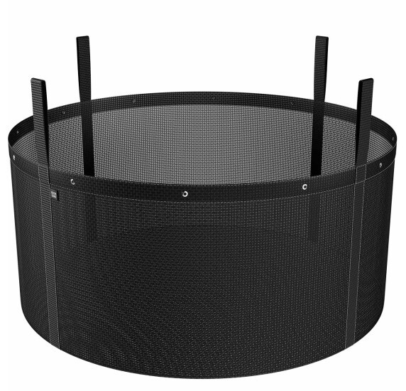 Vaso confeccionado com tela feita com fios de poliéster com revestimento de PVC com alta tenacidade, duráveis e resilientes. Esse material é extremamente resistente e flexível, mas tem muito pouca elasticidade, o que significa que não deforma nem rasga sob pressão. Seu revestimento vinílico de PVC também significa que o tecido tem bom desempenho em todo tipo de clima. Especialmente desenvolvido para áreas externas